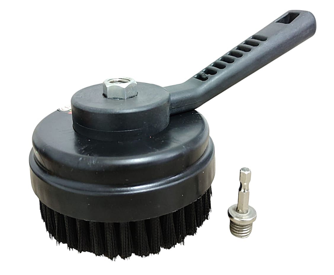 Acompanha: 1 escova capa anti respingo + 2 escovas rotativas de 100 mm + 1 eixo adaptador 14mm para uso em parafusadeiras + 1 chave de fenda para troca das escovas.