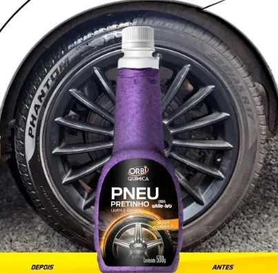 Aplicar o Pneu Pretinho ORBI com uma esponja macia, na superfície limpa e seca, cobrindo toda área desejada. Para realçar ainda mais o brilho caso deseje, aguarde a secagem e reaplique novamamente. Não mancha e não engordura.